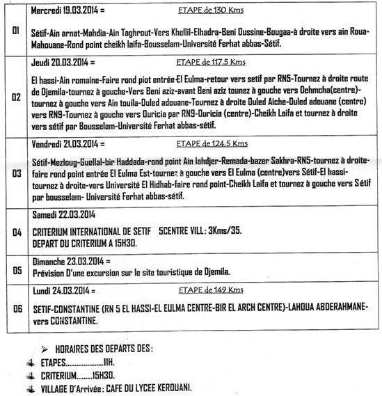 GTAC-2014 : Programme du TIS, Tour international de cyclisme de Sétif .