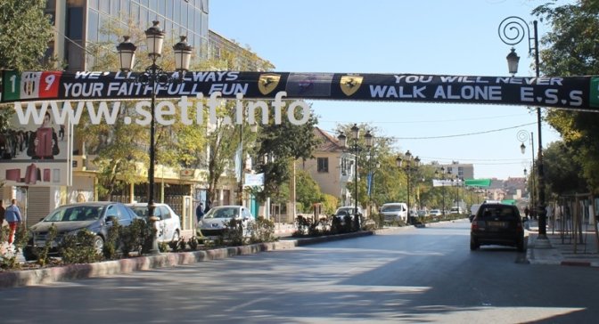 A J-1 de la Finale (match retour) de la Ligue des Champions d’Afrique de football, prévue samedi soir, entre l’Entente de Sétif et les congolais de l’AS Vita Club, la ville de Sétif est habillée avec des centaines de banderoles noires et blanches, aux côtés d’autant d’emblèmes nationaux.