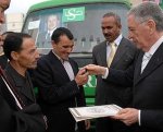 M. Djamel Ould Abbès, visiblement ému par toutes ces marques de confiance absolue exprimées à l’endroit du Président Abdelaziz Bouteflika et l’impact d’une démarche sereine engagée par cette wilaya, prendra la décision de venir en aide aux familles en difficulté et prendre en charge la quote-part de 10.000 dinars dont doit s’acquitter chacune de ces familles au titre des mécanismes arrêtés pour le raccordement en gaz naturel, comme il ne manquera pas de remettre les clefs d’un bus destiné au transport scolaire au président de l’APC de Aïn Lahdjar, un autre à celui de la commune de Ouled Saber, un troisième à la ligue sétifienne des sports pour handicapés et une ambulance au président de l’APC de Guenzet.
